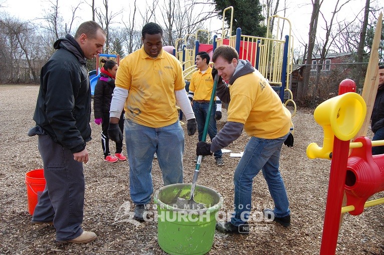 At about 9 a.m., Church of God volunteers began assembling three separate playground sets. The playground sets included a musical game structure, a gadget structure, and a toss and score game. Church of God volunteers put their muscles to work, digging holes and mixing cement for the installment of the playground attractions. The volunteers worked in unity with light hearts and smiles, despite it being a tough job. Nevertheless, they knew that their volunteer service would provide a comforting environment to the children of Manasquan Elementary School.